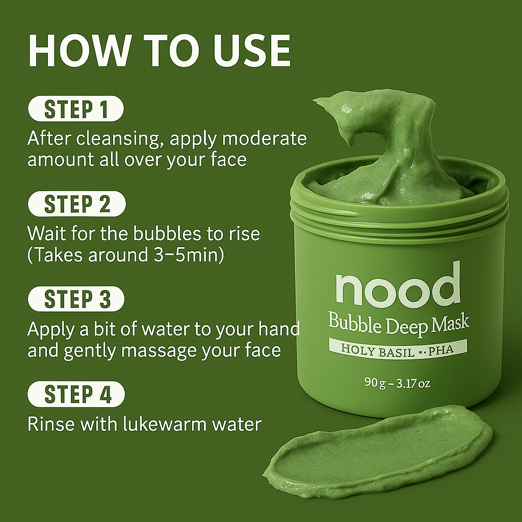 Revitaliza tu piel con la Mascarilla Profunda Nood Bubble. Enriquecida con Albahaca Sagrada y PHA, desintoxica suavemente, elimina impurezas e hidrata profundamente, dejando tu cutis más suave, fresco y radiante con cada uso.